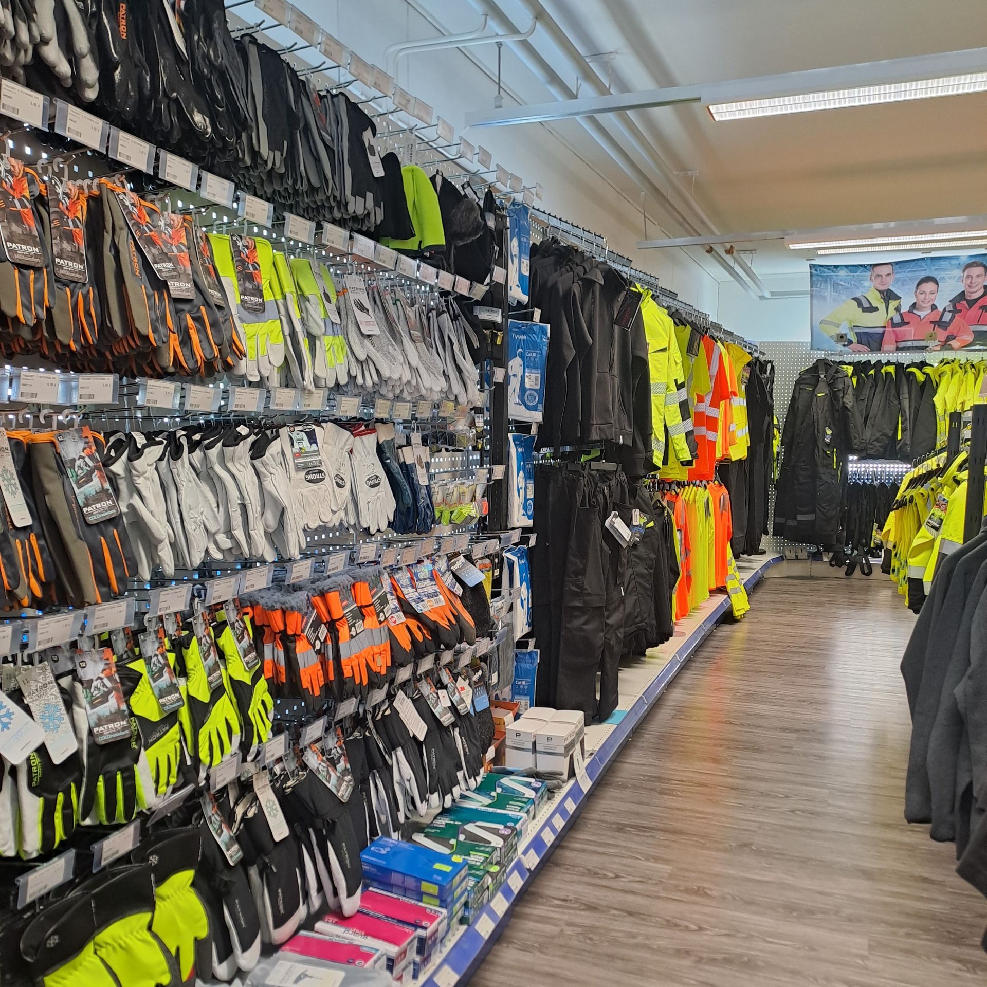 Valikoimaamme kuuluvat Helly Hansenin säänkestävät työvaatteet, Patron-merkin teollisuus- ja rakennustyövaatteet sekä Sievin turvajalkineet. Lisäksi tarjoamme suojaimia, käsineitä ja näkyvyysvaatteita. Valikoima löytyy myymälästämme ja sen pääpiirteet on esitelty työkalut ja varusteet -sivullamme.
